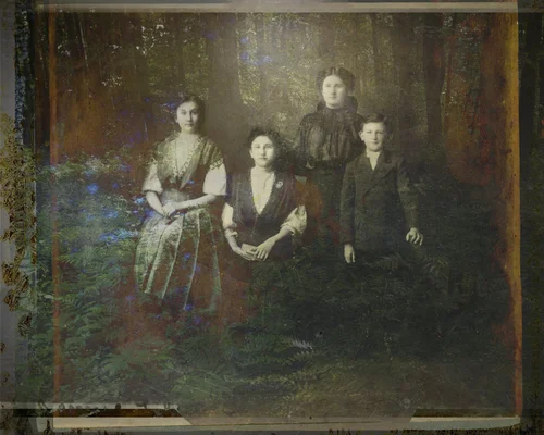 This project was made into two bodies of work; small digital prints and contemporary one-of-a-kind ambrotypes, collodian wet plate images on glass. The found vintage prints were likely created from a similar technology used in the ambrotype, emulsion on glass, process. Printing these constructed images as one-of-a-kind ambrotypes represents a coming home of the discarded photograph to a place where it once existed. While the inkjet prints, serve as a kind of alternate recollection.